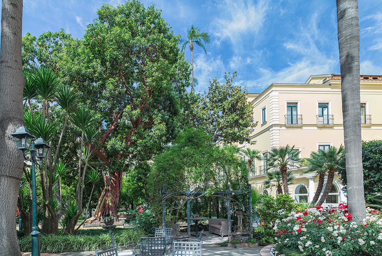 The elegant reception hall, called Sala Quattro Stagioni (Four Seasons Room), gives us back the atmosphere of that time, with its frescoes consisting of four female figures representing Spring, Summer, Autumn and Winter, and the antique furniture inlaid by old Sorrentine workers.